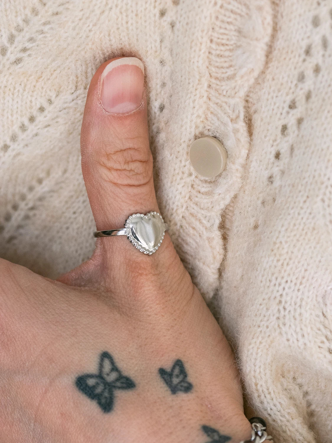 Voici la bague One love argent de la collection LOVELY.💖 Parce que tu mérites tendresse, éclat et passion, laisse-toi séduire par ces bijoux qui incarnent l’Amour avec un grand A. Il n’existe pas de trésor plus précieux que celui que l’on cultive dans son propre cœur.