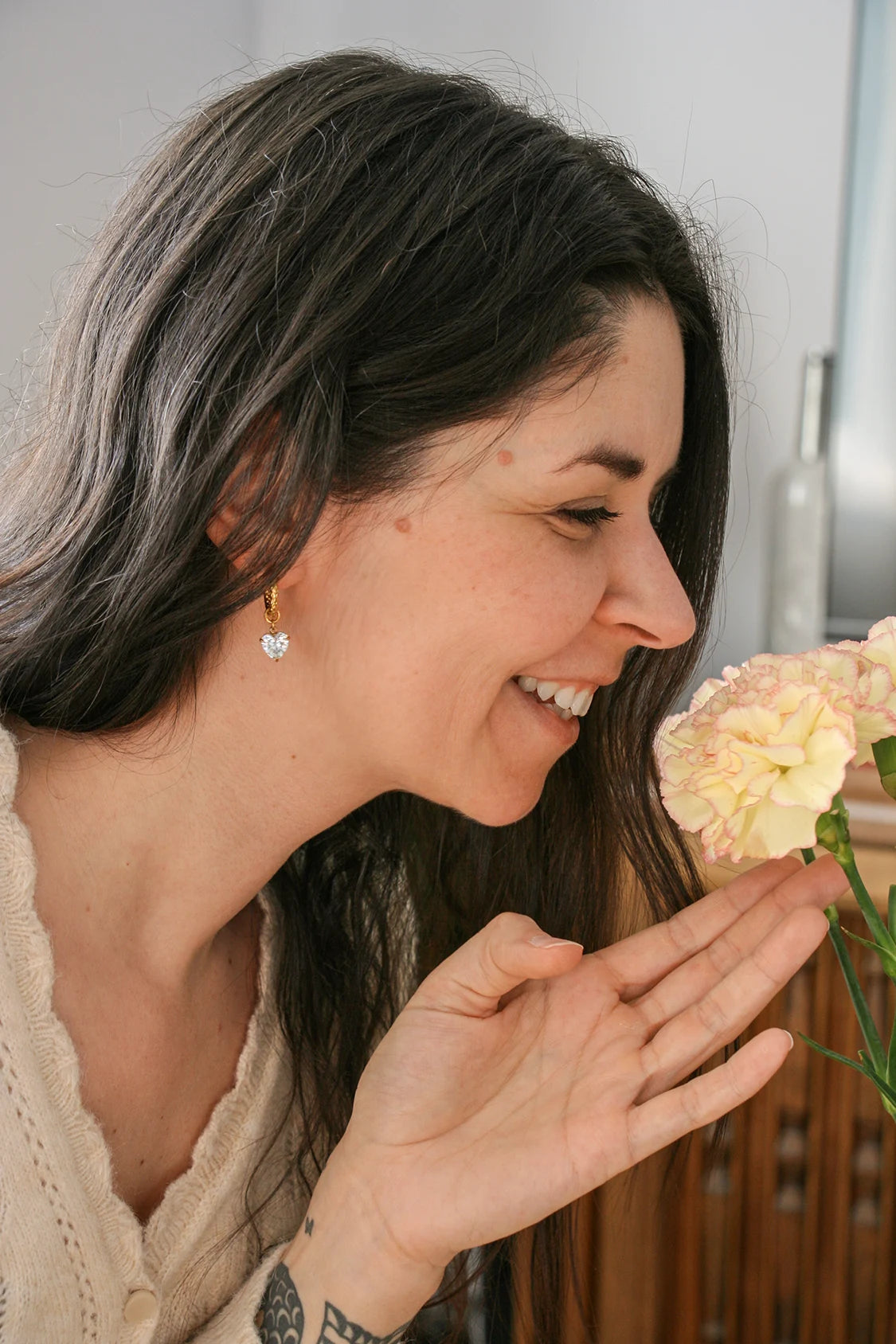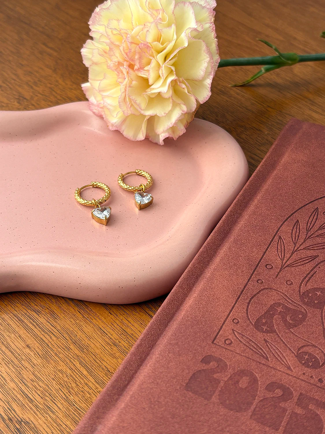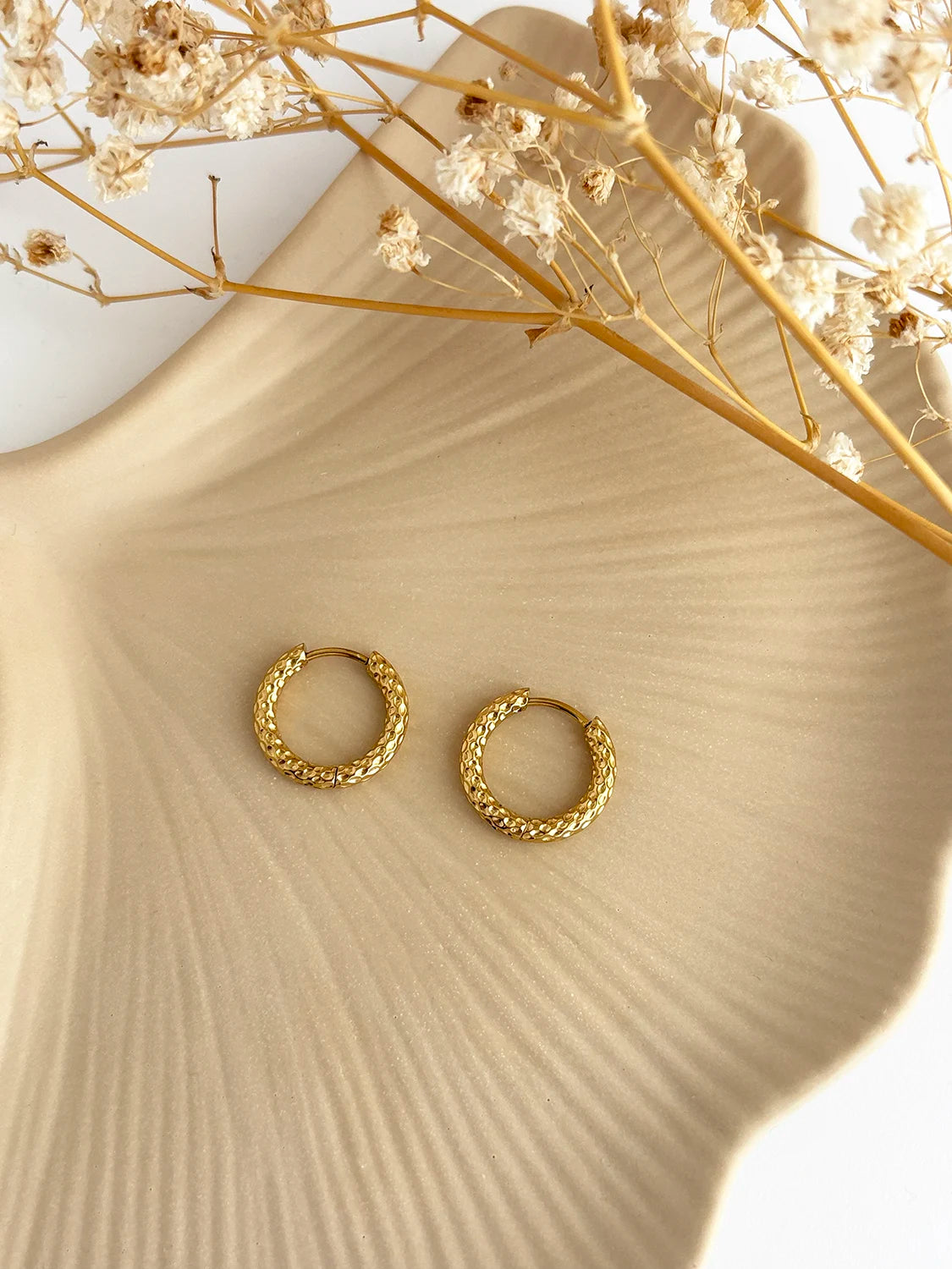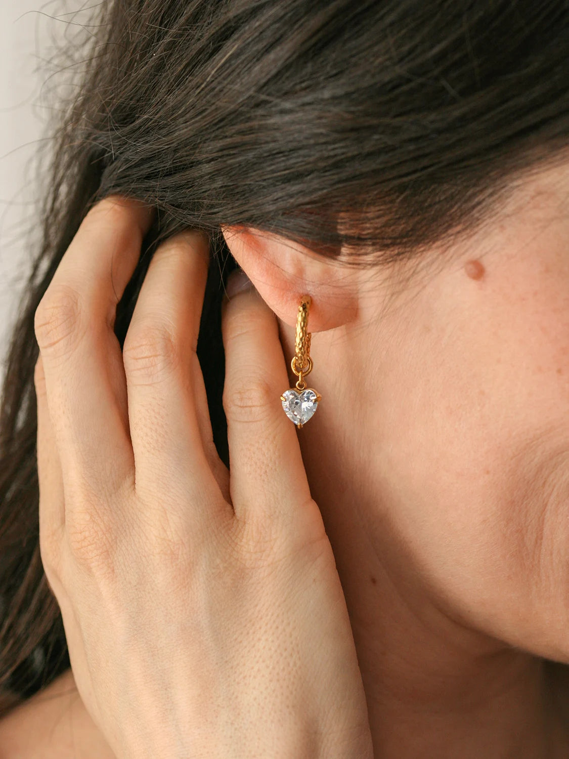 Les pendentifs sont amovibles, ce qui te permet de transformer les boucles d’oreilles Anylla selon tes envies. Avec les cœurs pour une touche lumineuse et assumée, ou simplement en anneaux texturés pour un style plus minimaliste. Un véritable bijou 2 en 1.